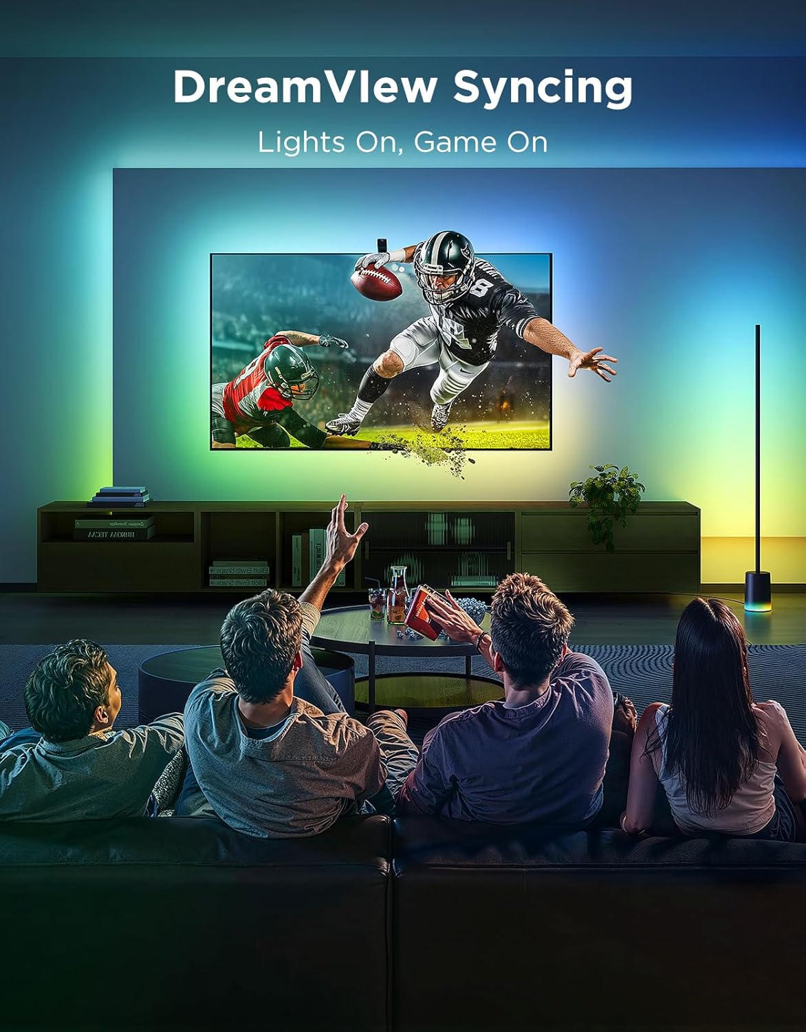 Featuring Fish-Eye Correction Function, this 11.8ft RGBICW Wi-Fi LED strip light delivers vibrant and dynamic lighting effects that transform your viewing area. The advanced technology ensures that the colors are displayed accurately and vividly, creating an immersive atmosphere for your movie nights or gaming sessions.